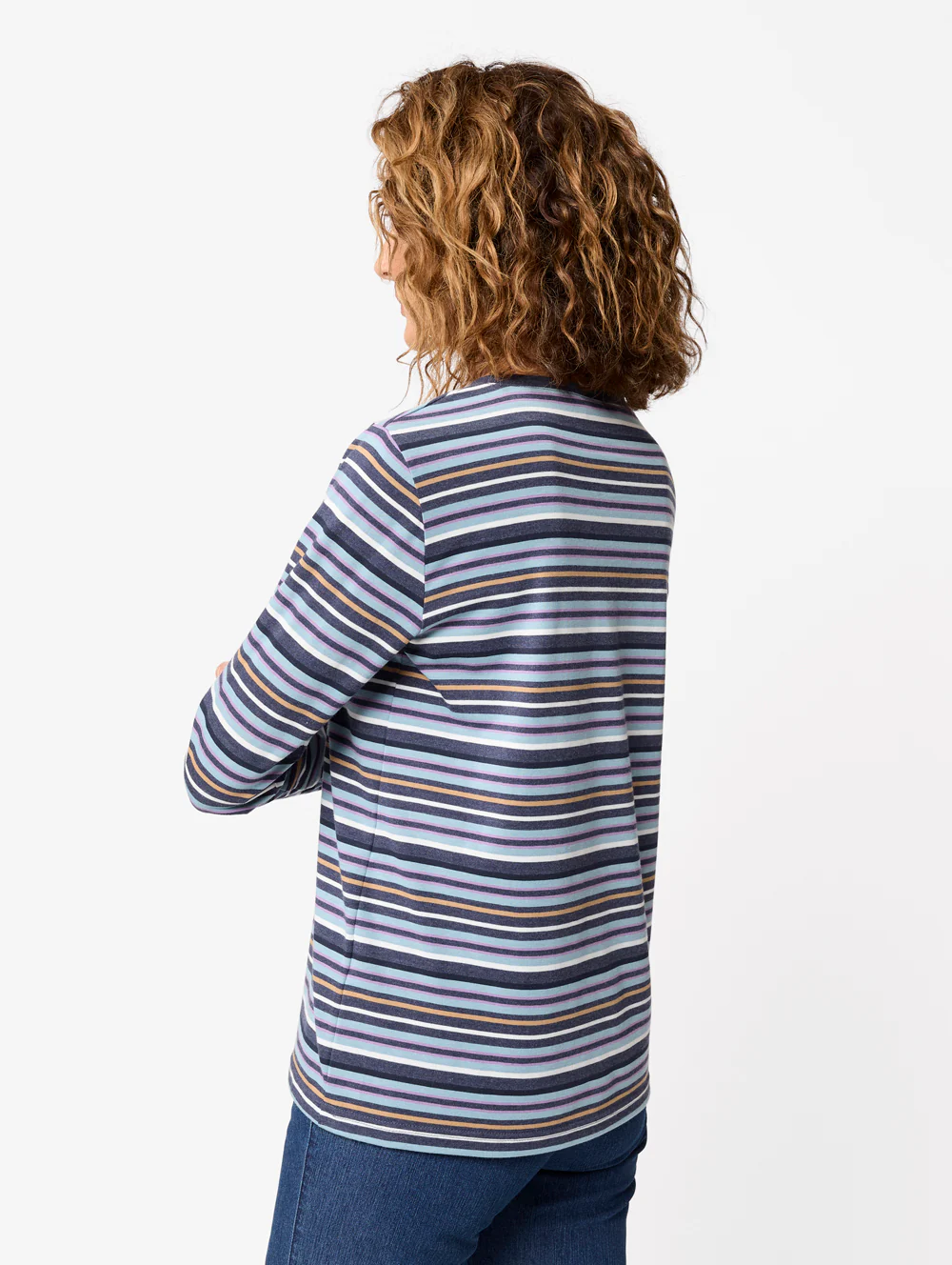 Designed with a round neck and long sleeves, the Rhode Top features a vibrant stripe pattern in refreshing shades of blue, white, orange, and pink, creating a lively, modern look. The regular fit ensures a flattering silhouette that pairs effortlessly for a relaxed yet stylish outfit.